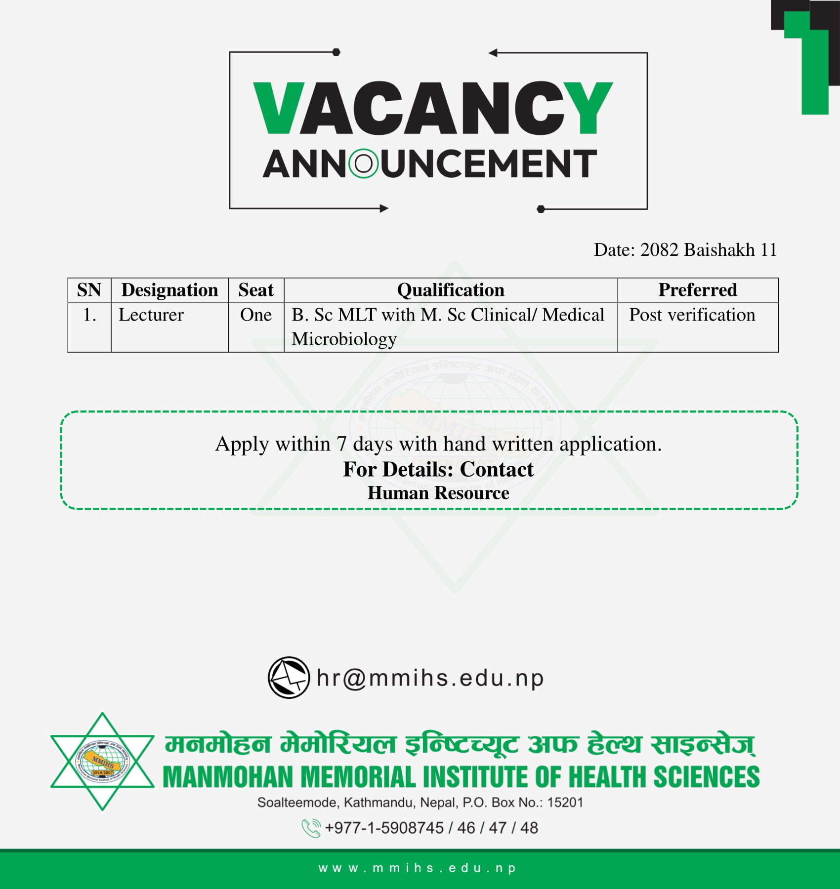 Dear students, parents and well-wishers, It gives me immense pleasure to Welcome you to Manmohan Memorial Institute of Health Sciences at Soalteemode, Kathmandu. On behalf of MMIHS, I would like to assure our parents, students and well-wishers for quality education at 21st century in health sciences through the renowned faculty members, outstanding learning environment, exemplary labor...