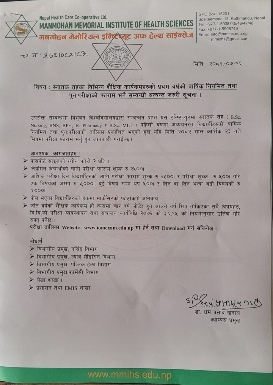 मनमोहन मेमोरियल इन्ष्टिच्यूट अफ हेल्थ साइन्सेजले आज नेपाली नारीहरुको महान पर्व तीजको अवसरमा शुभका...